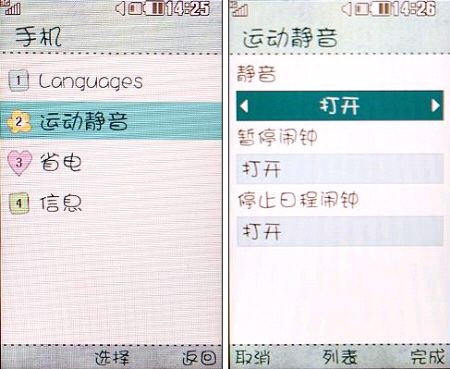 所谓运动静音也可以说是翻转静音,这也是棒棒糖的一个非常独特的设计,大概意思就 是在来电的时候或者闹铃响起的时候,只要将手机翻转过来,铃声就会停止。这个设计在上课或者 睡觉起床的时候尤其实用。