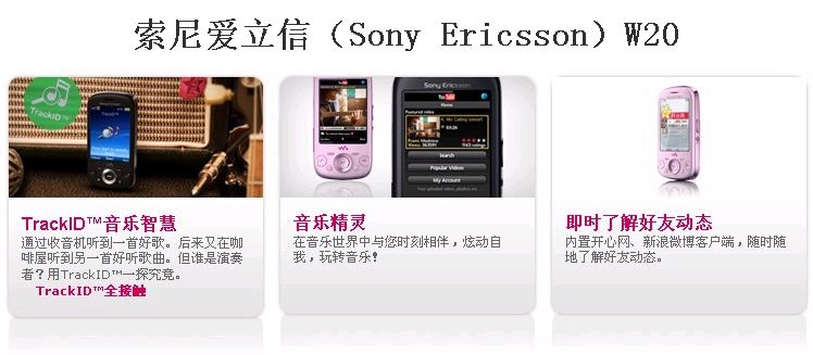 索尼爱立信(Sony Ericsson)W20 3G手机(粉色)WCDMA/GSM正规行货,机打发票,全国联保 |