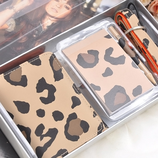 非常时尚的豹纹图案,卡其色配黑色,非常百搭。配有礼品盒,送人自用两相宜。