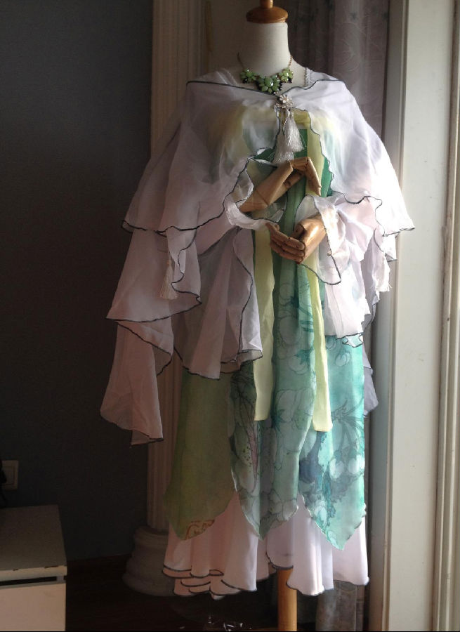 1 白色高丝宝襦裙【外罩5片数码印花梨花图案花瓣分片】