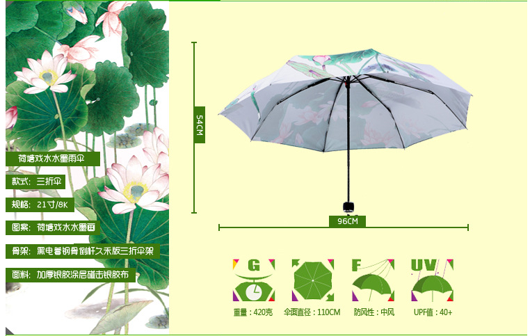 3、碰击银胶布伞面防晒又挡雨,是您日常出行的好伙伴。