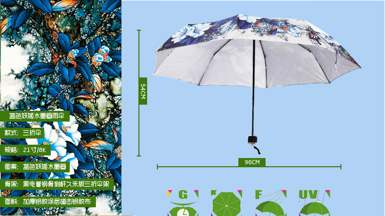 3、碰击银胶布伞面防晒又挡雨,是您日常出行的好伙伴。