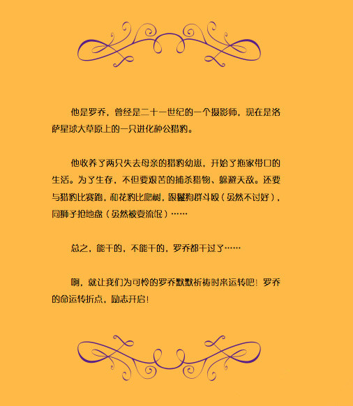 罗乔穿了,从二十一世纪的地球,穿到了洛萨星球大草原。成了一只被称为进化种的公猎豹。