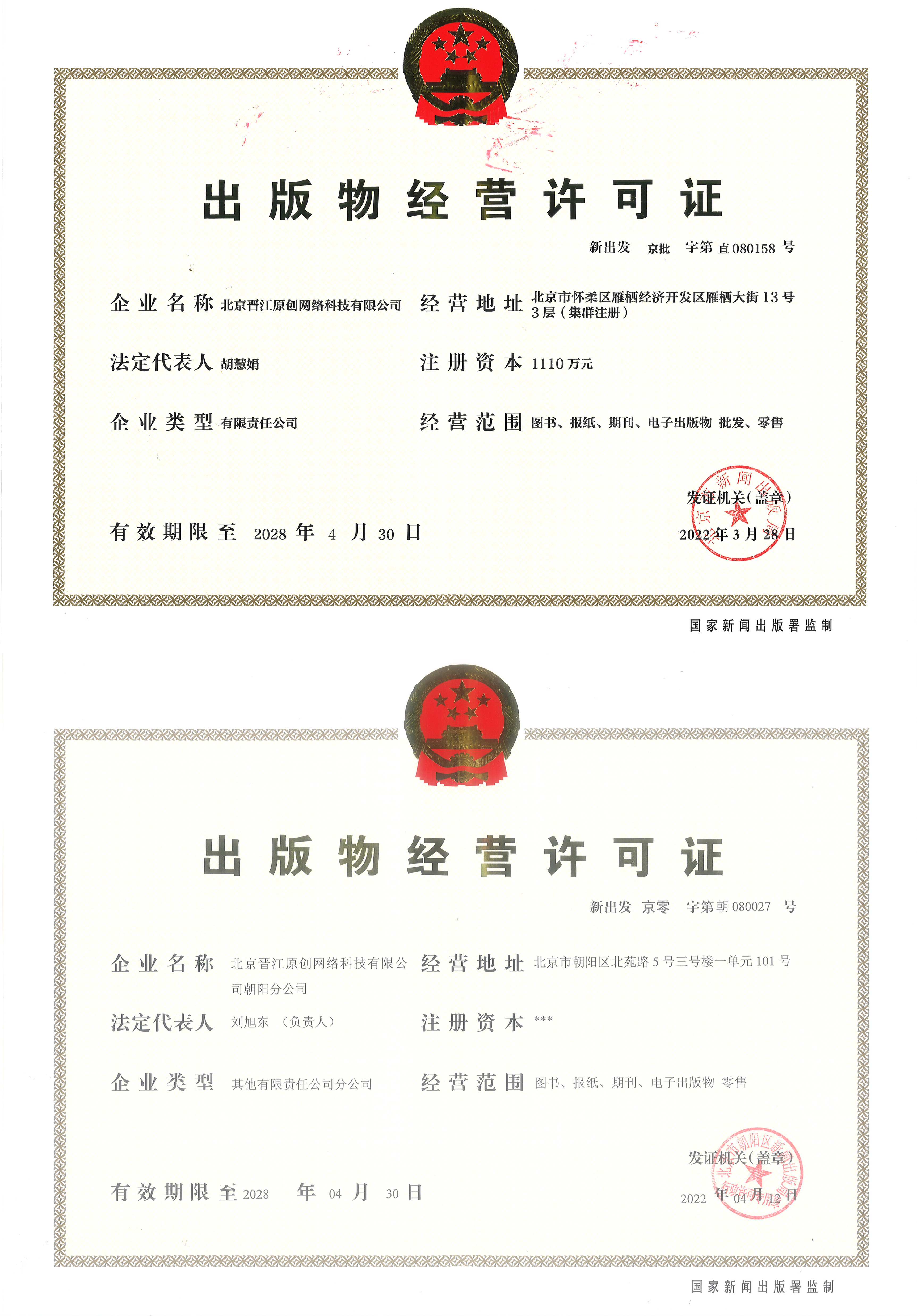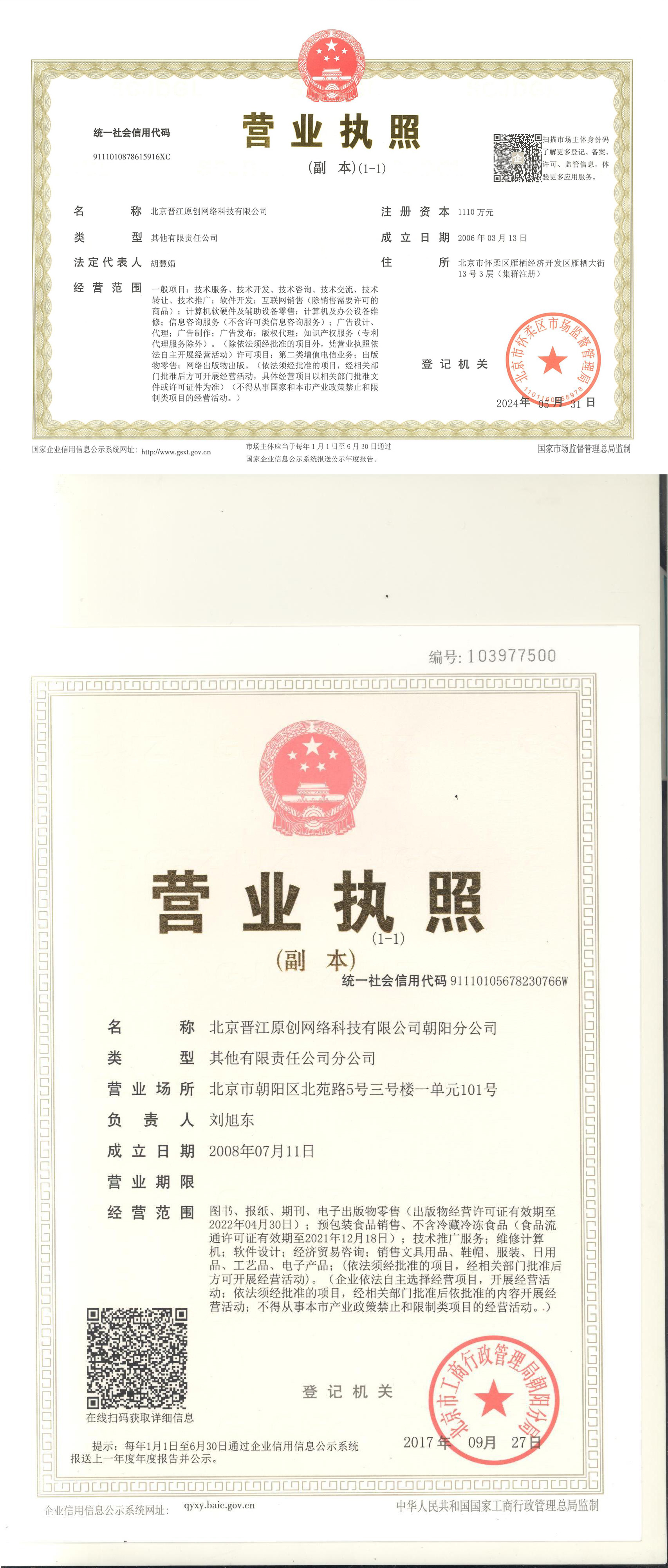 | 营业执照|出版物经营许可证 |